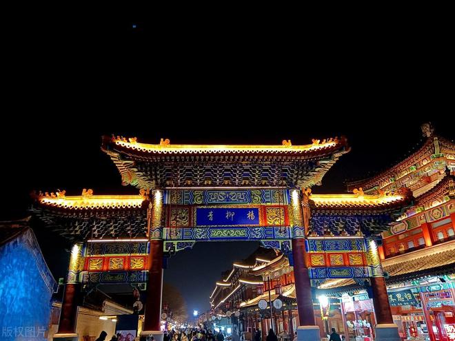 杨柳青古镇风情街坐落于天津市千年古镇杨柳青镇南、光明路以西,东临气势巍峨的文昌阁,西接"津西第一宅"石家大院,南靠古老的南运河。该街总占地面积12.041亩,使用面积为8027.65余平方米,是一组青砖灰瓦,磨砖对缝地仿清代商贸建筑群,采用长街和葫芦罐式相结合的建筑模式,以两层为主,局部有一层或三层。街上建有仿古青石牌楼一座,是中国是石牌坊之最和穿街戏楼及各式具有清代古风的店铺。